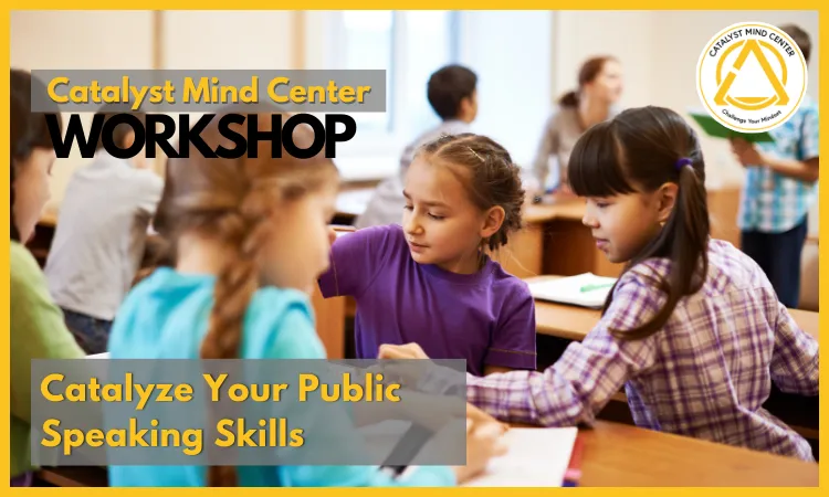 Catalyze Your Public Speaking Skills is an empowering workshop designed to help youth master the art of public speaking and boost their confidence. Through interactive exercises and supportive coaching, participants will learn how to express themselves clearly, captivate an audience, and overcome the fear of speaking in front of others.